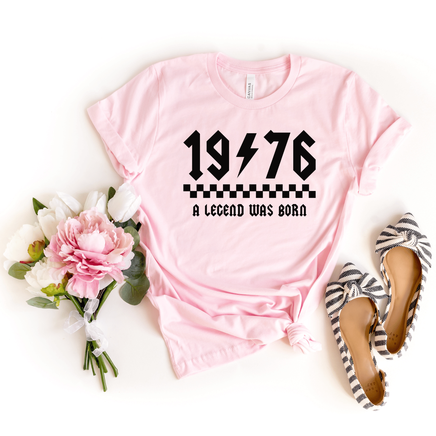 Celebrate a milestone year with this bold vintage-style “A Legend Was Born” T-shirt. Designed with a rock-inspired 1976 graphic, this soft unisex tee makes the perfect birthday gift for anyone born in 1976. Comfortable, stylish, and ideal for everyday wear.