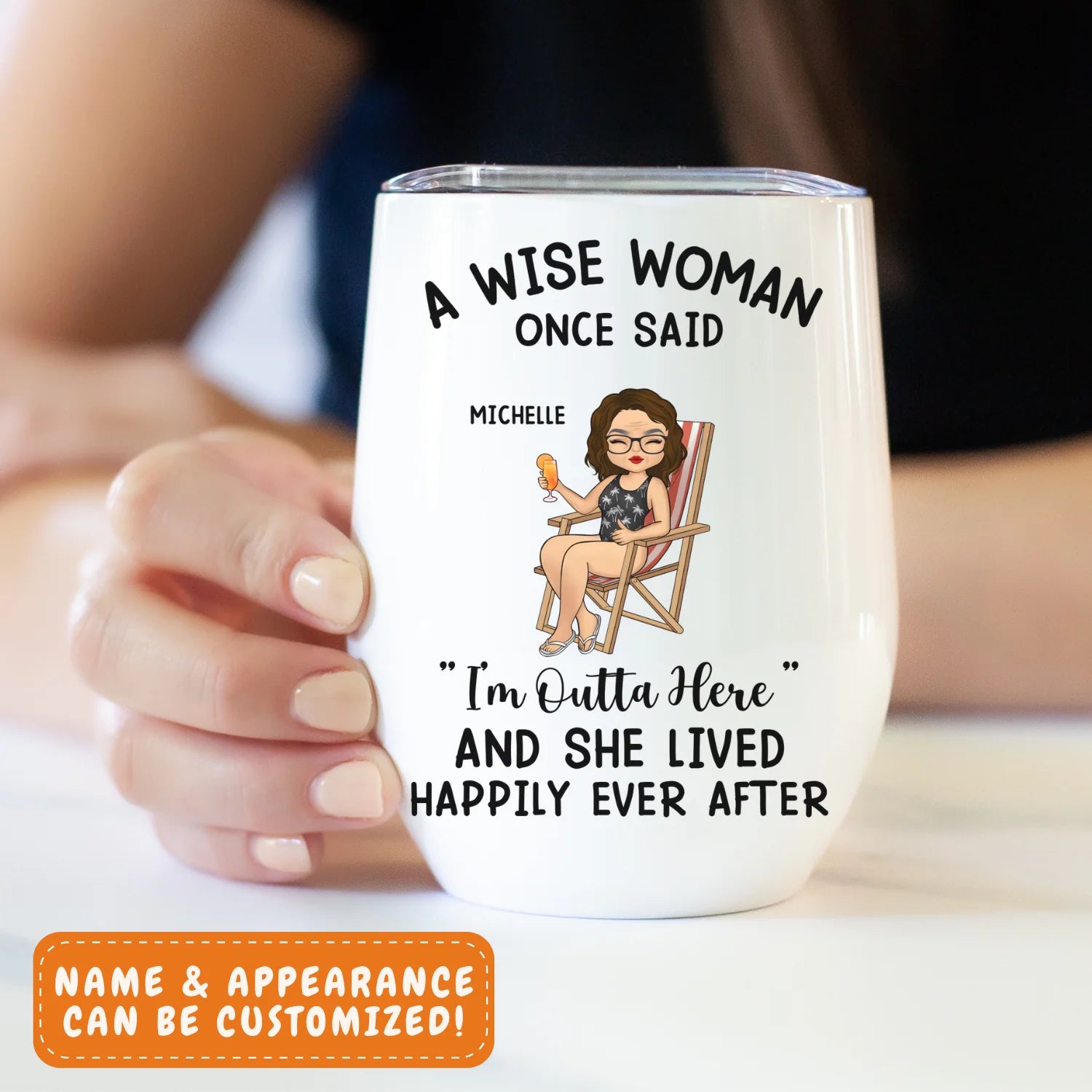 Celebrate freedom, relaxation, and well-earned “me time” with this witty wine tumbler. Featuring a fun illustration of a woman living her best life, it’s a perfect companion for vacations, retirement, or everyday moments of bliss. Personalize the name and appearance to make it uniquely yours or gift it to someone who deserves a toast to happiness.